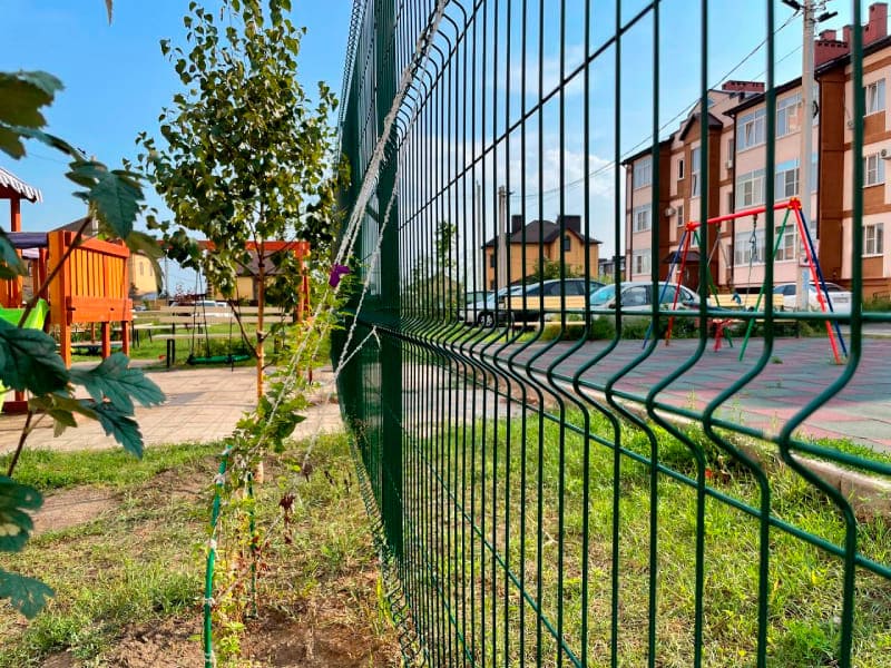 Городские фонды нуждаются в обустройстве ограды не меньше, чем частные дома. Сетчатое ограждение для многоквартирного дома - экономичный вариант с лаконичным дизайном. Такие заборы отлично вписываются в городской ландшафт. Не нужно будет прилагать много усилий для поддержания хорошего внешнего вида. 3д сетка нашего производства сохраняет свой первоначальный вид надолго, краска не трескается и не выцветает.
